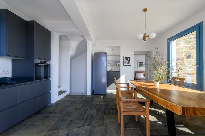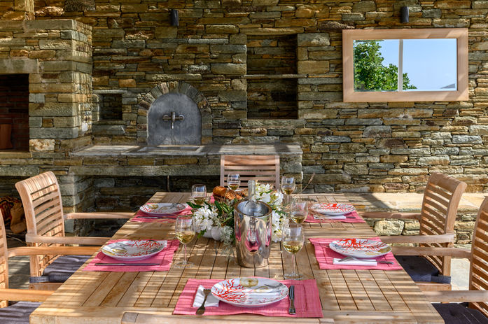 La maison possède une grande cuisine entièrement équipée, une grande salle à manger intérieure. La cuisine donne sur une grande terrasse extérieure avec une grande table et une cuisine extérieure avec barbecue traditionnel ou électrique.