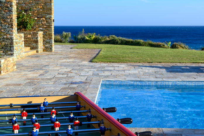 Divisé en quatre maisons indépendantes sur trois niveaux, avec chacune leur terrasse et leur « privacy », le complexe peut accueillir jusqu’à 28 personnes. Une grande terrasse en contre-bas avec piscine, bar et espace détente autour du gazon est partagé par les 4 maisons.